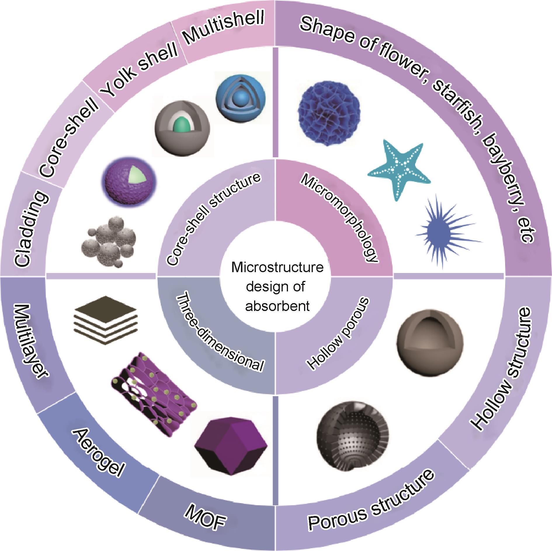 当前电磁环境愈发复杂,电磁防护愈发重要,传统吸收剂的吸收机制单一,无法满足吸波材料“薄、轻、宽、强、广”的现实需求。需将多种类吸收剂进行结合,丰富电磁波损耗机制,并对吸收剂进行微结构设计,增强其阻抗匹配与损耗衰减性能,可促进入射电磁波的多重反射与散射。本文综述了国内外对吸收剂微结构设计及其性能调控的研究进展,分析了微结构设计对吸收剂的损耗机制、最佳反射损耗系数和有效吸收带宽的影响,最后对吸收剂的损耗机制探究、体系筛选与微结构设计的研究方法以及多功能性吸波材料的未来发展等方面进行了总结与展望。