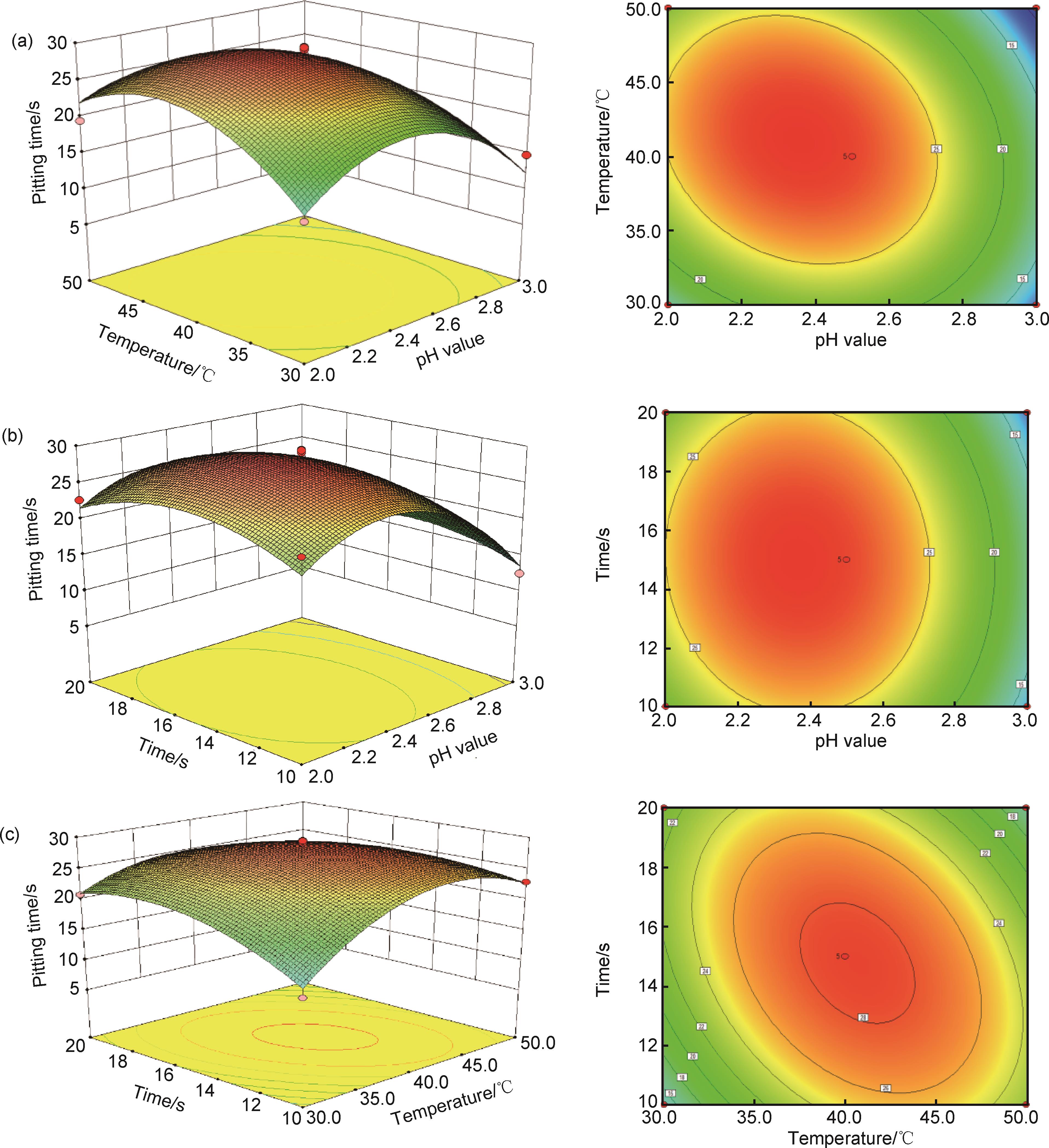 仅以单宁酸作为成膜剂,使用化学转化法在AZ91D镁合金表面制备环境友好转化膜,以提升耐蚀性。采用对比实验筛选合适的酸调节转化液pH值;利用响应面(Box-Behnken)法对转化工艺中的pH值、反应温度、转化时间进行优化,得到最佳工艺条件,并探讨了pH值对转化膜性能的影响。使用CuSO4点滴实验、动电位极化曲线和电化学阻抗谱评价膜层耐蚀性;利用SEM、EDS对AZ91D镁合金表面形貌及元素组成进行表征。结果表明,单宁酸转化膜的最佳工艺为单宁酸10 g/L、pH值2.7(盐酸调节)、反应温度41 ℃、转化时间15 min,所得转化膜具有良好的耐蚀性,膜层均匀致密,且覆盖完整,主要由单宁酸的水解产物和与Mg2+生成的螯合物组成。响应面法实验结果显示,pH值对转化膜耐蚀性的影响较大:pH值过低,膜层粗糙,致密性较差;pH值过高,膜层较薄,缺乏连续性,无法完整覆盖镁合金表面。