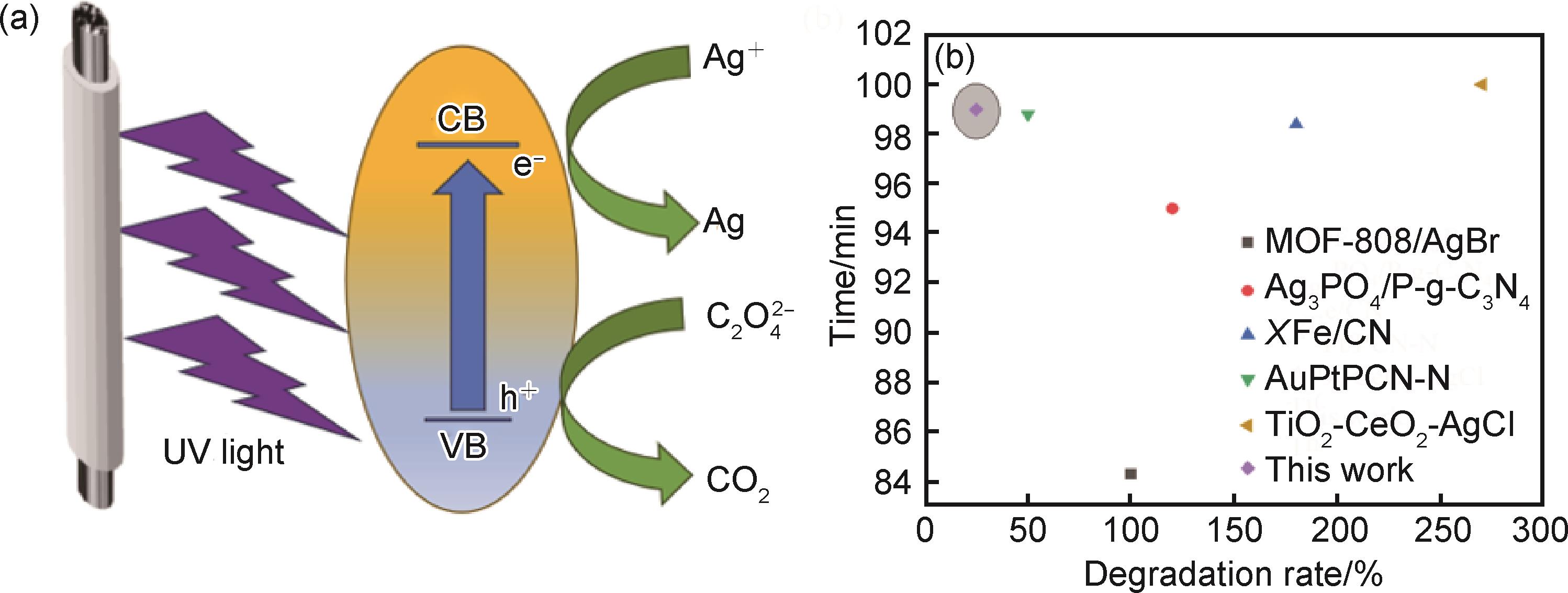 半导体光催化材料因其绿色及低能耗等优势,在环保领域有重要的应用前景。Ag3PO4以优异的光响应利用率和良好的催化性能引起了人们的广泛关注。然而,Ag3PO4纳米粒子易团聚,且难以回收,不利于实际应用。本文用沉淀法合成Ag3PO4纳米粒子,以海藻酸钠(NaAlg)作为载体,将Ag3PO4分散到NaAlg水溶液中得到铸膜液,以草酸(OA)作为交联剂,制备了OA@NaAlg@Ag3PO4光催化膜,并对该膜进行了结构和性能表征。在10 g/L的NaCl溶液中该膜可以保持完整,而海藻酸钙膜则溶胀破裂,表明该膜具有优异的耐盐性。在紫外光照射15 min后,OA@NaAlg@Ag3PO4膜对含10 g/L NaCl的10 mg/L甲基橙(MO)的降解率达到90%,该膜对10 mg/L的亚甲基蓝、孔雀石绿、橙黄G、苋菜红和罗丹明B均达到90%以上的降解率。OA@NaAlg@Ag3PO4膜具有良好的抗溶胀性及耐盐性,对高盐下的多种染料具有良好的光催化降解性能,其重复使用性好且易于回收催化剂Ag3PO4。