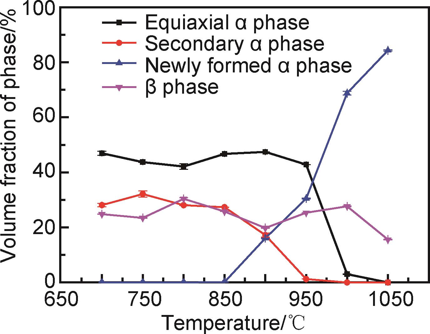 采用光学显微镜(OM)、扫描电子显微镜(SEM)、透射电子显微镜(TEM)等研究TA15钛合金在不同温度热处理过程中的微观组织演变和室温拉伸力学性能变化规律,对TA15钛合金在800~900 ℃和950 ℃以上温度热处理后出现两次室温拉伸强度波动现象进行详细表征和分析。结果表明:随热处理温度升高,TA15钛合金先后呈现等轴α相+片层状次生α相和β相→等轴α相+片层状次生α相和β相(新生α相和β相)→粗化新生α相和β相的组织演变过程,继而引起TA15合金的室温拉伸强度呈现整体上升的变化趋势。在相对较高温度热处理过程中新形成的片层α相和片层β相分阶段先后吞并片层状次生α相和等轴初生α相,并随着热处理温度进一步升高而粗化。分析认为,新生片层α相和β相的强化效果增强导致800~900 ℃范围内的强度提升,900~950 ℃范围内新生片层α相和β相吞并原始片层次生α相和β相且新生α相和片层β相片层尺寸相对粗化引起强度小幅度下降,950 ℃以上的等轴α相消溶转变为更高比例新生α相和片层β相再次增强片层结构强化效果,引起950 ℃以上室温强度二次达到峰值。