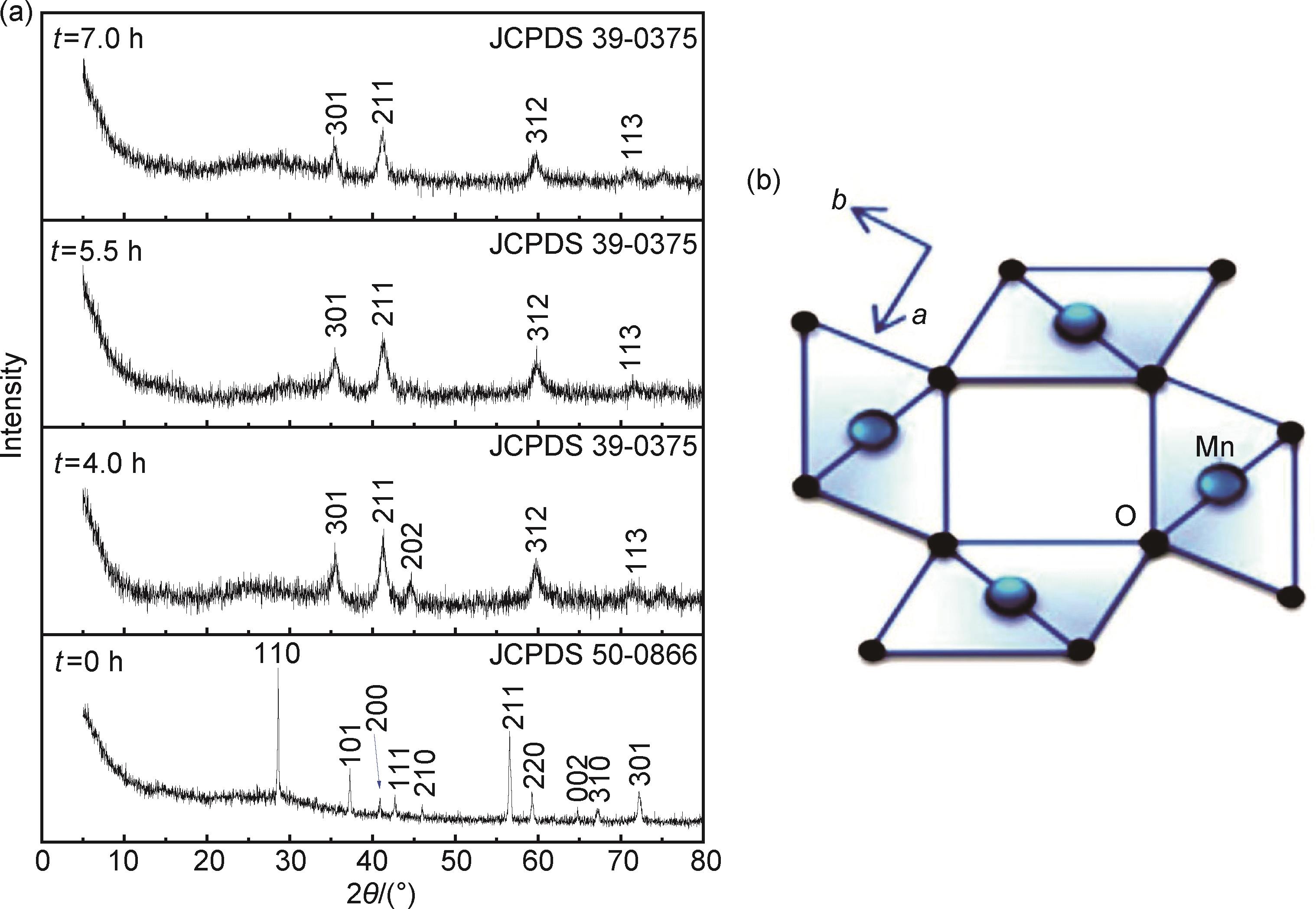 为了研究高能球磨时间对β-MnO2试样的微观结构以及电化学行为的影响,采用XRD、SEM、激光粒度分析仪、TEM测试并分析试样的晶体结构、颗粒形貌、颗粒尺寸分布和原子排列;采用电池测试仪和电化学工作站测试试样电池的电化学性能、电化学阻抗谱和CV曲线。结果表明,与球磨前试样相比,球磨后试样的相结构空间群改变,晶粒尺寸和颗粒尺寸均降低,并形成晶态与非晶态共存的微观结构。随着球磨时间增加,试样颗粒形态向细小分散→颗粒团聚与分散→颗粒团聚与板块转变,同时晶格畸变逐渐严重。球磨后试样电池达到最大放电容量的循环次数减少,放电效率均较好,但最大放电容量与球磨时间致使的晶粒尺寸、颗粒形态、晶格畸变有关。在不同球磨时间下,4.0 h球磨试样电池的最大放电容量相对较高,经100次充放电循环后,5.5 h球磨试样电池的容量保持率相对较好。根据动力学研究发现,与其他电池相比,4.0 h球磨试样电池的电荷转移阻抗、Warburg扩散阻抗相对较小,循环伏安法的峰面积相对较大,这进一步说明了该试样电池具有相对较高的电化学容量和相对较小的充放电电位差。因此,在本研究范围内,从容量与容量保持率出发,β-MnO2试样适宜球磨时间为4.0 h。