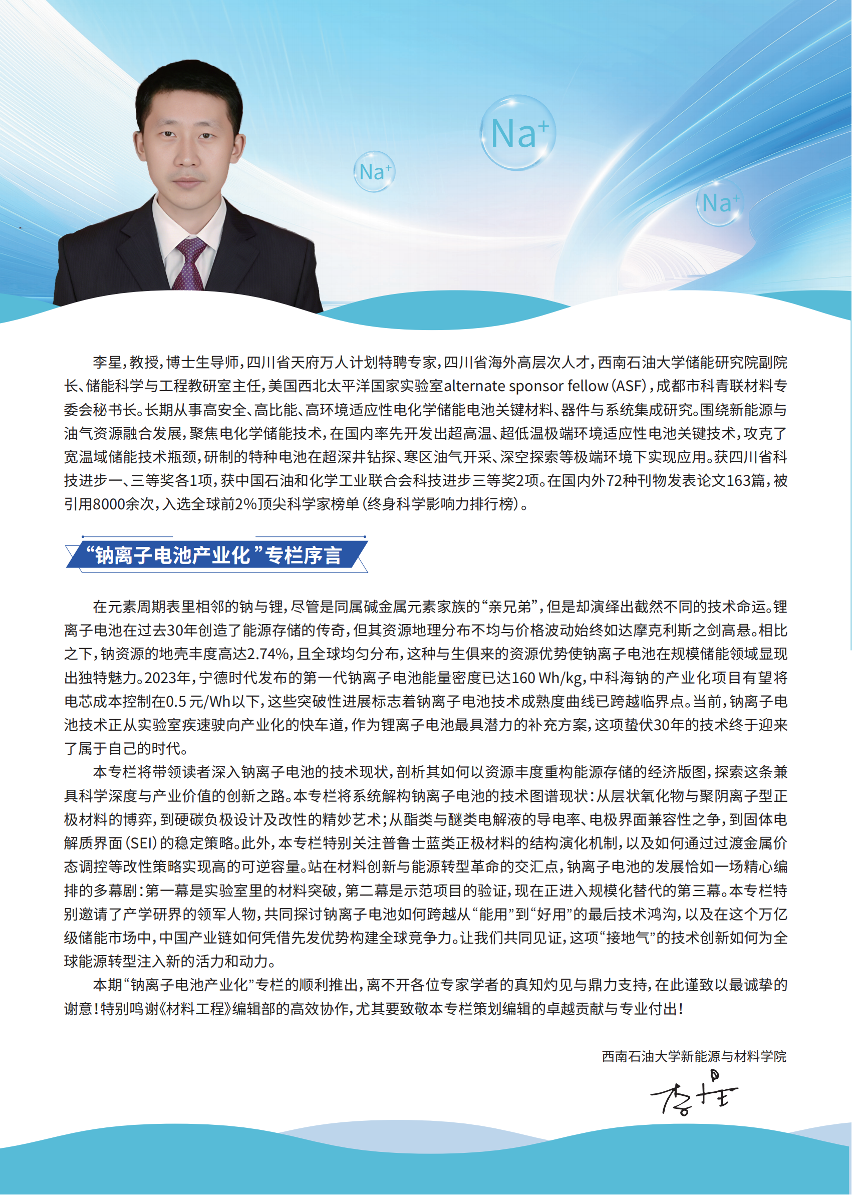 本期“钠离子电池产业化”专栏的顺利推出,离不开各位专家学者的真知灼见与鼎力支持,在此谨致以最诚挚的谢意!特别鸣谢《材料工程》编辑部的高效协作,尤其要致敬本专栏策划编辑的卓越贡献与专业付出!